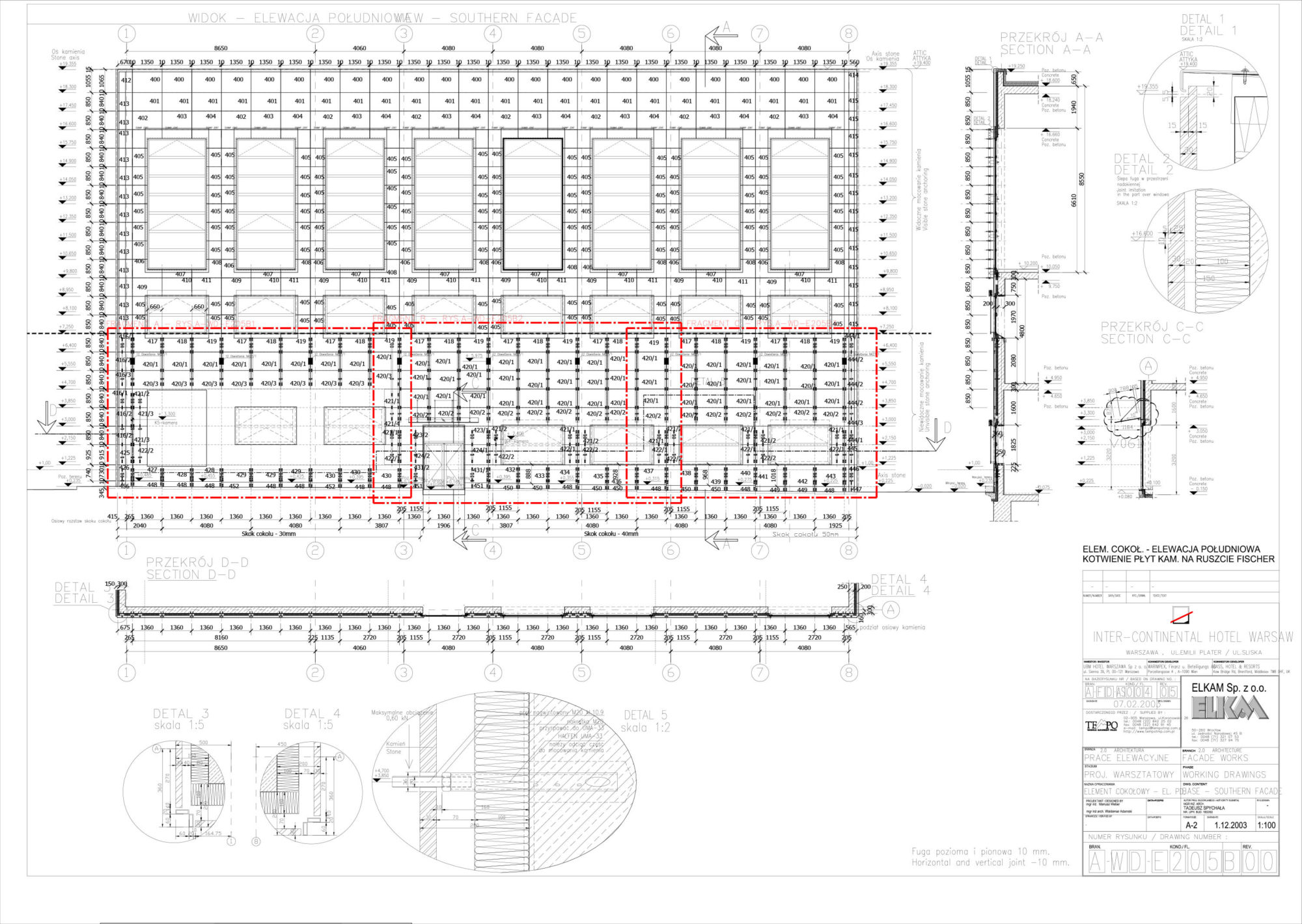 Designer of the remaining part of façade stone cladding (after taking over the project from previous designer) and its fixing and sub-structure