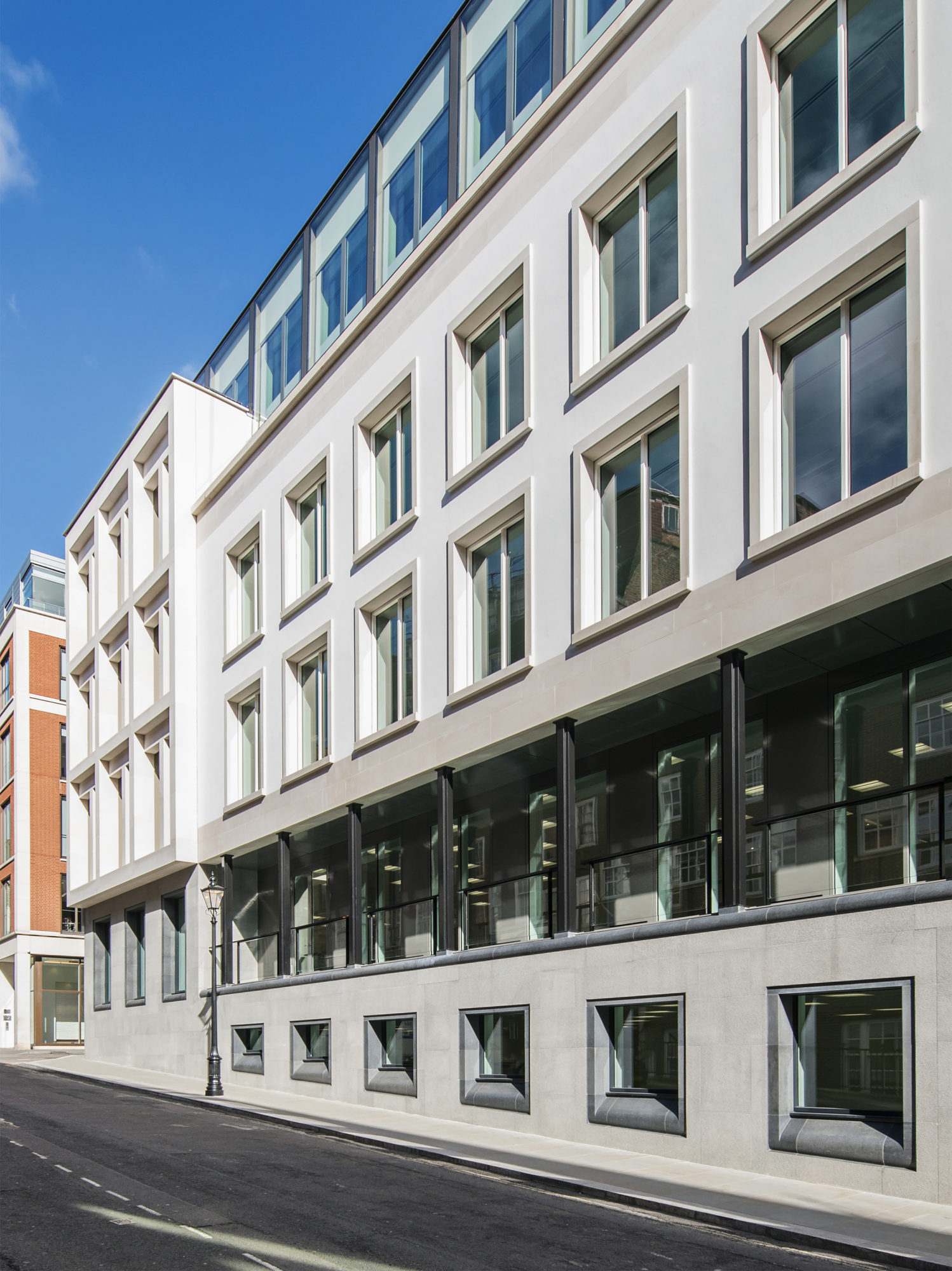 7-storey exclusive office building in the historic City of Westminster, made partially by demolition and redevelopment of new building connected to refurbished neighbouring building to create a bigger complex
