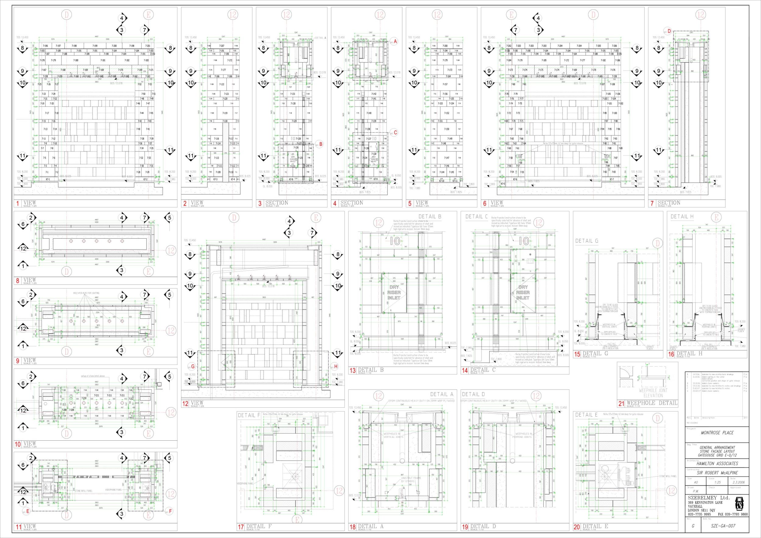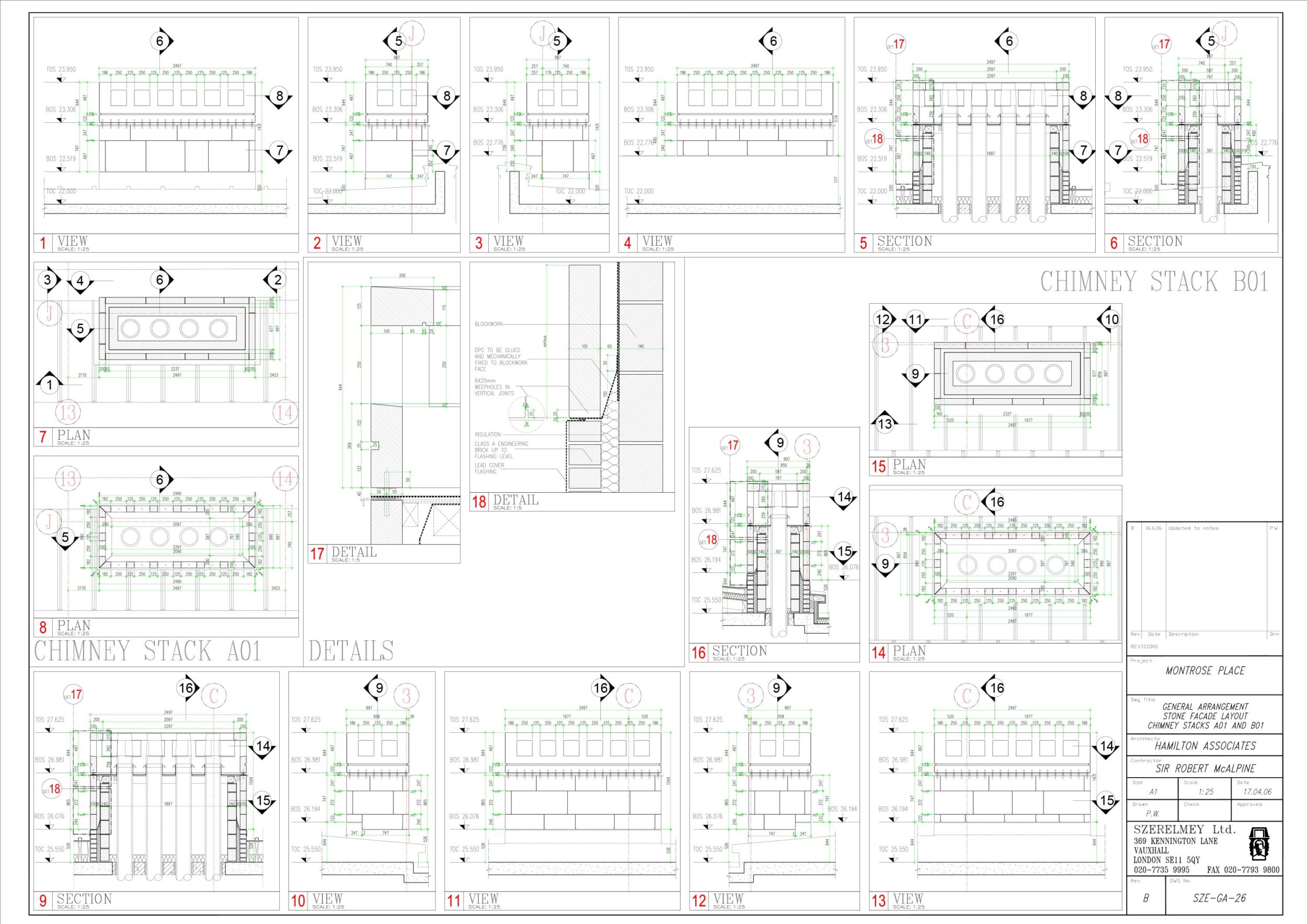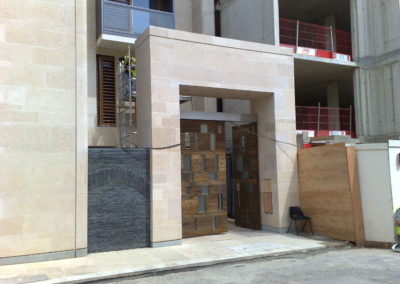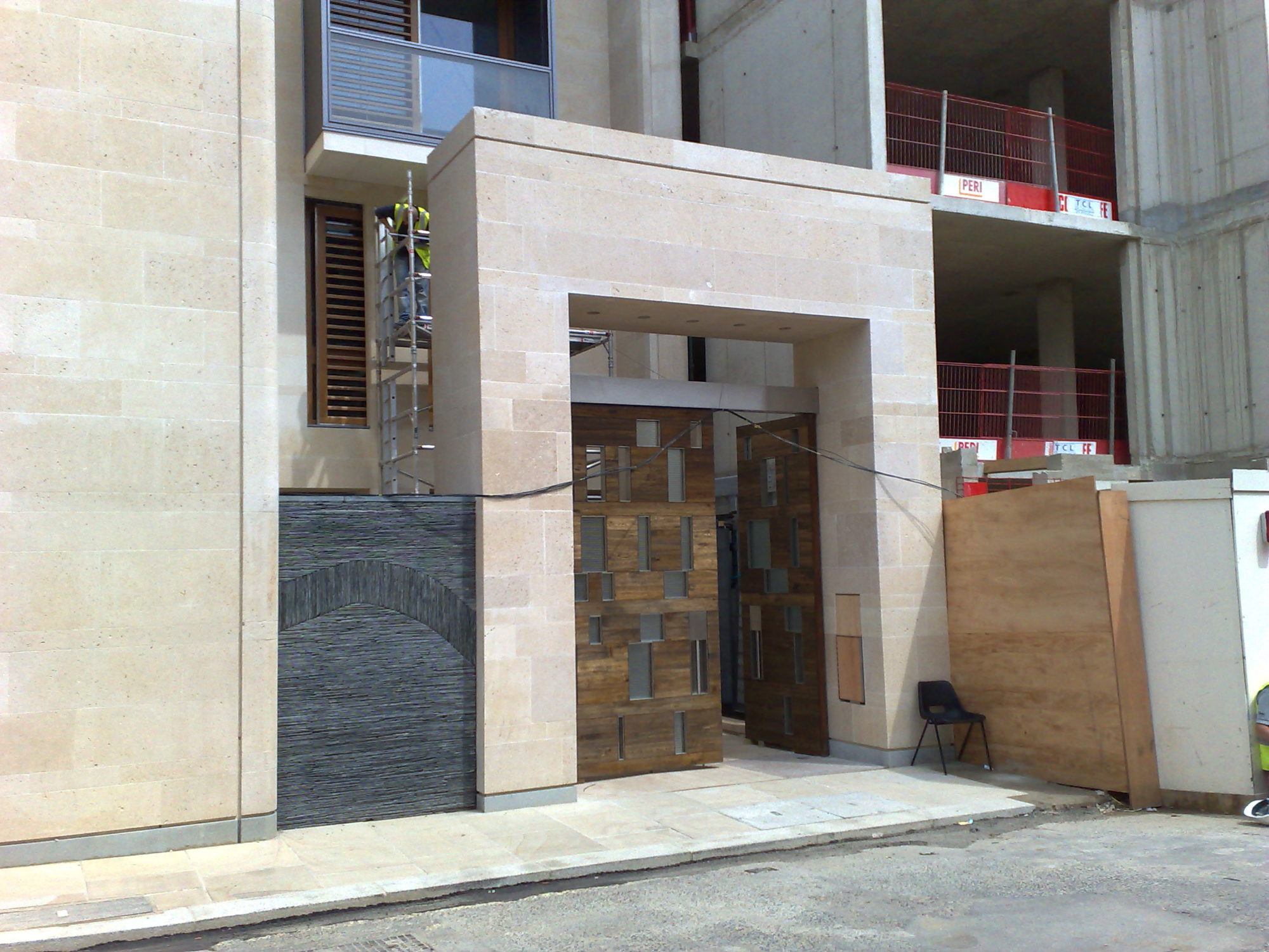 MONTROSE PLACE – London / UK – 2006 Modern apartment complex, limestone cladded external walls Stone contractor – Szerelmey Ltd Saint Maximin Roche France limestone Stainless steel fixings Designer of stone cladding of entrance gate and 4 chimneys and their fixings Altogether 80 sqm in my scope of work